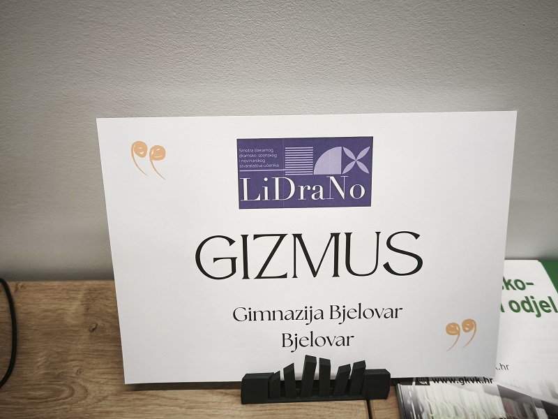 Gizmus je i ove godine pozvan na državnu smotru LiDraNa, što znači da je odabran kao jedan od najboljih školskih listova u državi, uz preostalih četrnaest. Zbog toga, učenici Patricia Prigl i Matija Lončarević, te mentorica Biljana Barišić Mudri, proveli su u Vinkovcima tri dana. Na okruglom stolu za školski list predstavili su Gizmus, ali isto tako čuli brojne pohvale te poneku konstruktivnu kritiku. Ponosni smo što je naš Gizmus izdvojen kao primjer najboljeg digitalnog školskog lista, što potvrđuje cjelogodišnji rad i trud učenika, ali isto tako i mentorice. Osim prisustva na okruglom stolu, učenici i mentorica uživali su u scenskim nastupima, istražili Vinkovce, sklopili nova prijateljstva te stekli nova…