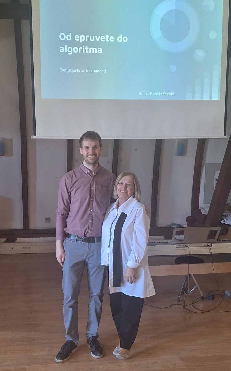 Od epruvete do algoritma Povodom 150 godina Gimnazije Bjelovar profesorica Ankica Fusić provodi projekt tijekom kojeg poziva bivše učenike škole, danas poznate i uspješne znanstvenike. Tako je u petak 24. travnja 2026. školu posjetio bivši učenik naše škole dr. sc. Robert Stepić i održao predavanje Od epruvete do algoritma. Kroz prezentaciju pokazao je učenicima vlastiti put od srednje škole do trenutnog posla. Već se od samog početka u srednjoj školi isticao te je sve četiri godine sudjelovao na državnom natjecanju iz kemije pod mentorstvom profesorice Ankice Fusić. Tada je i započela njegova ljubav prema kemiji te je idući logičan korak bio upisati Prirodoslovno-matematički fakultet, Kemijski odsjek. Tamo je odradio preddiplomski…