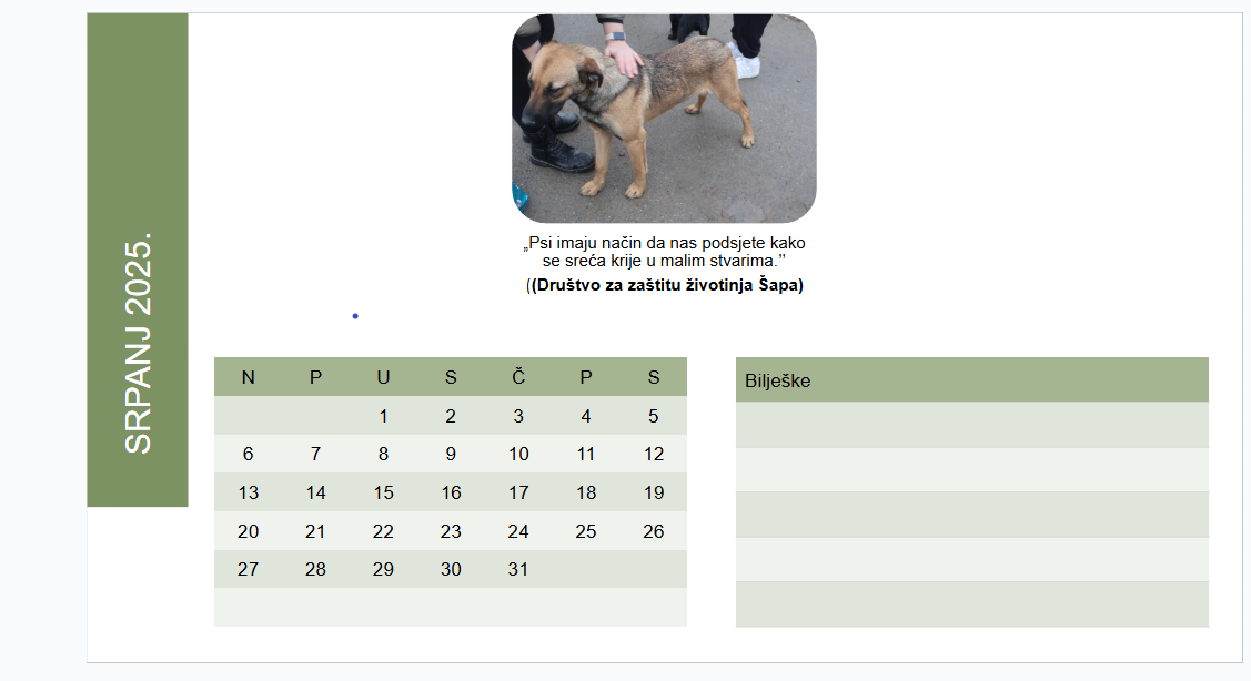 Kalendar krznenih prijatelja iz Šape – srpanj i kolovoz