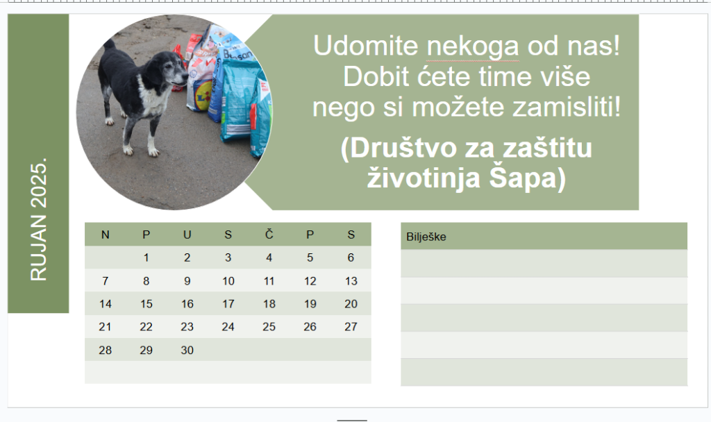 Kalendar krznenih prijatelja iz Šape – rujan