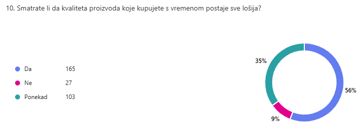 Pad kvalitete odjeće primjećuje većina učenika (63 %). Unatoč tome, njih 59 % kupuje odjeću u fast fashion trgovinama, poput Zare, Stradivariusa, itd.